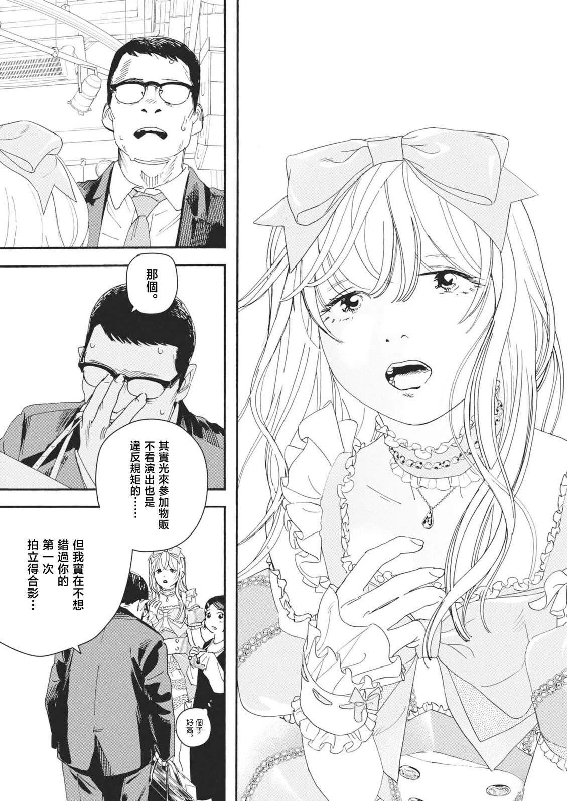 握住缝纫机的手柄,把线穿过。被工作侵占的生活空间中,新田明良正在为偶像们缝制衣服。 父亲打光,弟弟播放音乐,穿著我制作的衣装的小妹一边唱歌一边跳舞。 “这样的日子要是能一直持续下去就好了”,小小愿望终究落空,被不和谐的音符扰乱了内心,平静的日子也因此撕裂。 这段记忆也早已成为过去。 在工作中看到的演[]演唱会视频里,有一个女孩吸引了我的目光。这是通过偶像与针线交织的,关于家人的故事[-折叠]